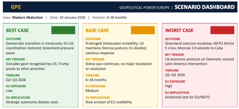 Implication: Risk assessment must account for interaction effects. A narrow focus on ‘Venezuela policy’ misses how the episode reshapes the entire strategic environment. The EU needs systemic resilience, not issue-by-issue firefighting.